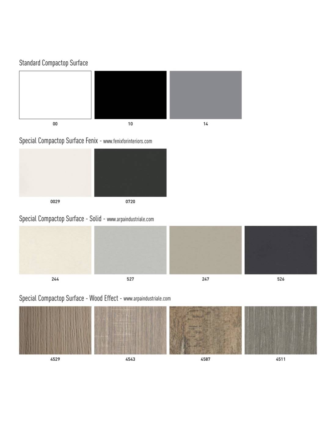 Tablero Compactop disponible en los colores: White, Black y Pearl Grey. Superficies Compactop Special 10 (Mínimo 5 piezas por código).