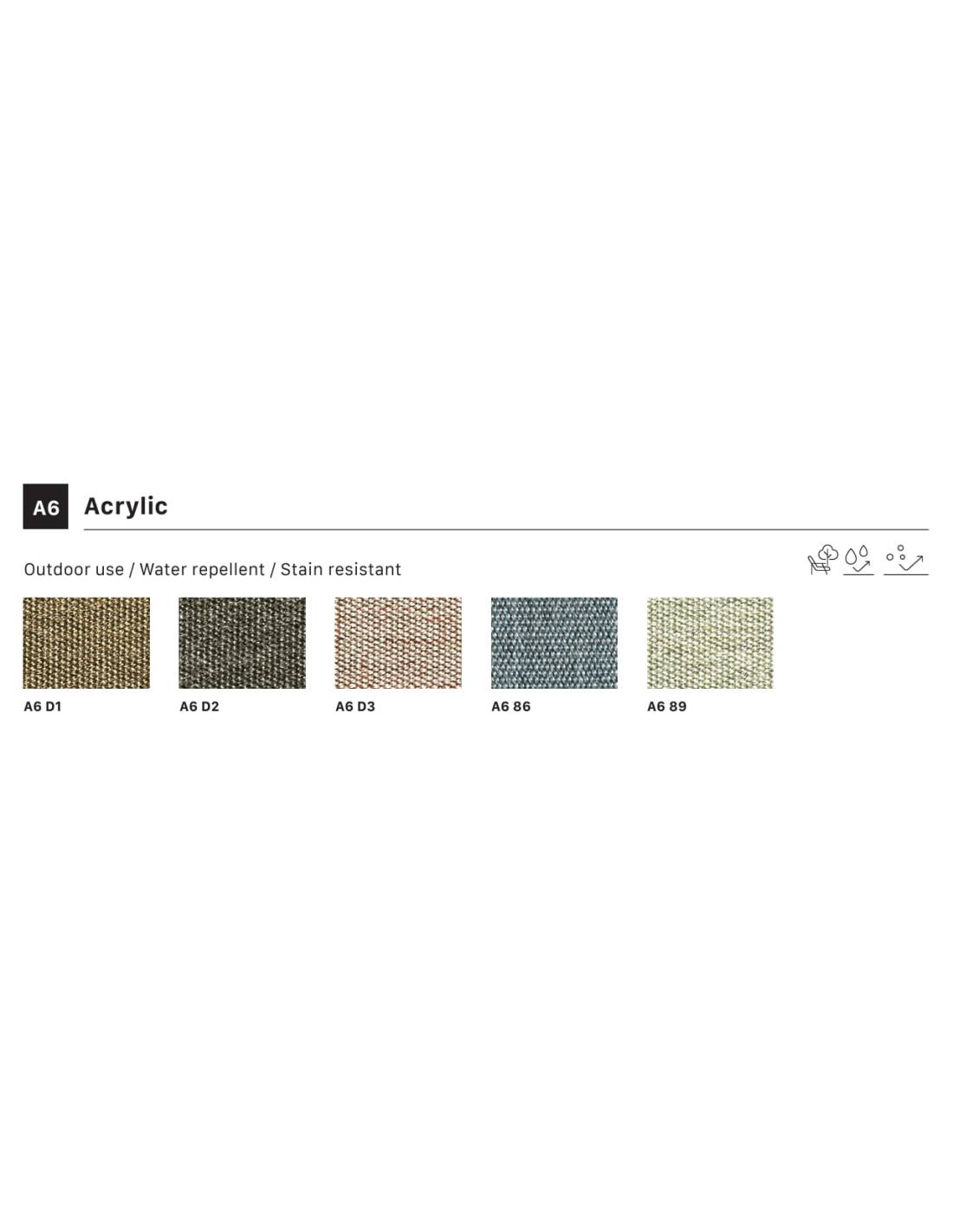Para uso interior ( para sillas con cojines con tejido de las series T9 y L1 ) y exterior ( para sillas con cojines con tejido de las series A6 ).